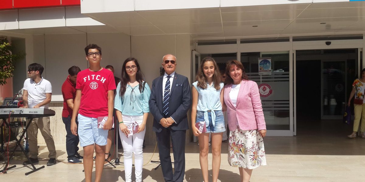 2015-2016 eğitim öğretim yılını başarıyla bitirerek dereceyle giren Anadolu Lisesi 11. sınıf öğrencilerimizden Hakan Berk Ünal birinci, Ayşe Nur Sadioğlu ikinci, Hüseyin Deniz Öncel üçüncü; 10. sınıf öğrencilerimizden Yasemin Naz Yeğin birinci, Sibel Erdoğmuş ikinci, Büşra Karamısır üçüncü; 9. sınıf öğrencilerimizden Ali Yiğit Tavusbay birinci, emir Saygılı ikinci, Irmak Akar üçüncü oldu. Ortaokul 8.sınıf öğrencilerimizden Zeynep Okur birinci, Can Doğan ikinci ve Elif Çiftlik üçüncü oldu. Öğrencilerimize ödüllerini Koordinatör Müdürümüz Yakup Erdoğan ve İlkokul Ortaokul Müdürümüz Zeynep Ergül verdi.