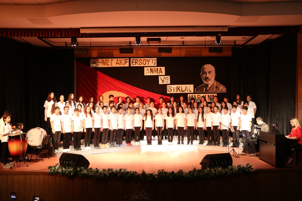 Yurdumuzun düşman işgaline uğradığı felaket günlerinde hazırlanan İstiklâl Marşı’mızın TBMM’de kabul edilişinin 97. yıl dönümünü okulumuzda düzenlediğimiz törenle kutladık. Saygı duruşu ve İstiklâl Marşı’nın okunmasıyla başlayan bahçe töreninde Sosyal Bilgiler Öğretmenimiz Vildan Ünal günün anlam ve önemini belirten konuşma yaptı. Ünal konuşmasında “ Sevgili gençler, İstiklâl Marşı’nı sevmek ülkemizi sevmektir. İstiklâl Marşı’nı coşkuyla söylemek ülkemize, bağımsızlığımıza sahip çıkmaktır.” sözlerine yer verdi. Konferans salonunda devam eden törenimizde 6.sınıf öğrencilerimizden oluşan koromuz İstiklâl Marşı’mızı ve ardından İstiklâl mücadelemizi seslendirdiler. Sosyal Bilgiler Öğretmenimiz Vildan Ünal’ın konuşmasının ardından Koordinatör Müdürümüz Yakup Erdoğan konuşmasını yaptı. Erdoğan konuşmasından “İstiklâl Marşı bu millet için, bir kitabın ön sözü neyse tüm Kurtuluş Savaşı’nın büyük mücadelesinin ön sözü şeklindedir. Bugün her zamankinden çok ihtiyaç duyduğumuz milli birlik ve beraberliğimizi en veciz şekilde ifade eden bir mutabakat belgesidir.” diyerek günün anlam ve önemini vurguladı. Ardından 7-C sınıfı öğrencilerimizden Ela Aynacı ve 7-E sınıfı öğrencilerimizden Emir Salih Uzcan İstiklâl Maşı’mızı okudu. “İstiklâl Marşı’nın Kabul Süreci” konulu sinevizyon gösterisinin ardından törenimiz sona erdi.