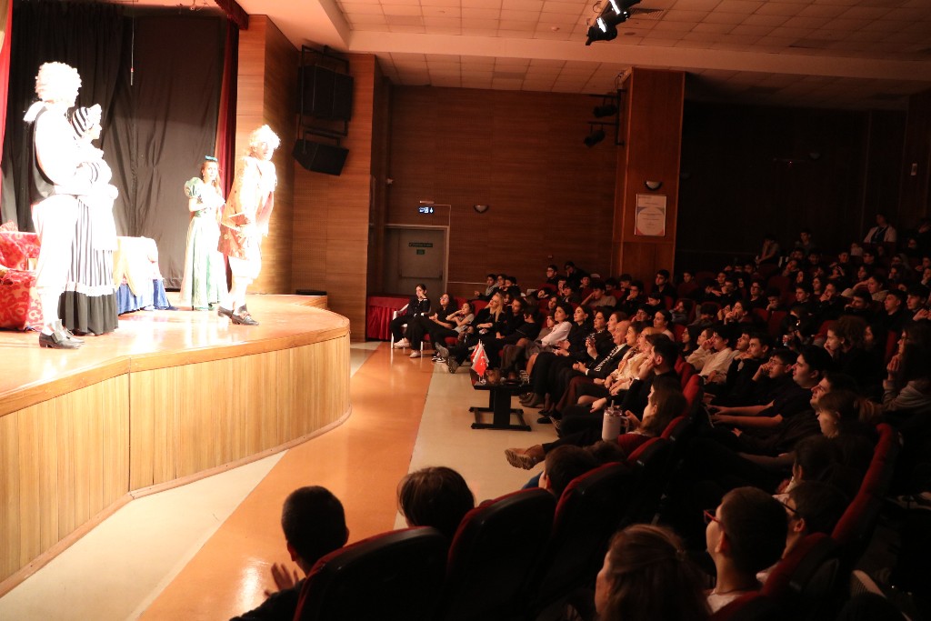Öğrencilerimiz, Dünya Tiyatrolar Günü kapsamında okulumuz konferans salonunda, dünyaca ünlü yazar Molière’in “Kibarlık Budalası” adlı eserini izledi.