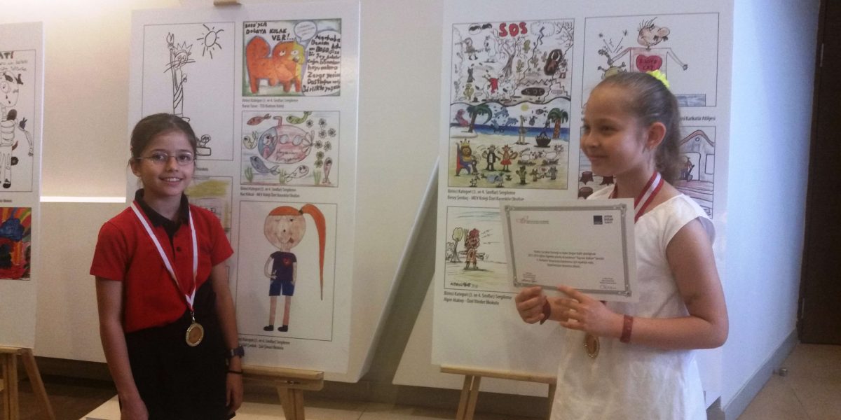Yaratıcı Çocuklar Derneğinin düzenlediği “Hayvan Hakları” konulu karikatür yarışmasında 3-C sınıfı öğrencimiz Beray Şenbaş ve 4-C sınıfı öğrencimiz Naz Köksal’ın eserleri birinci kategoride sergileme ödülü kazandı.